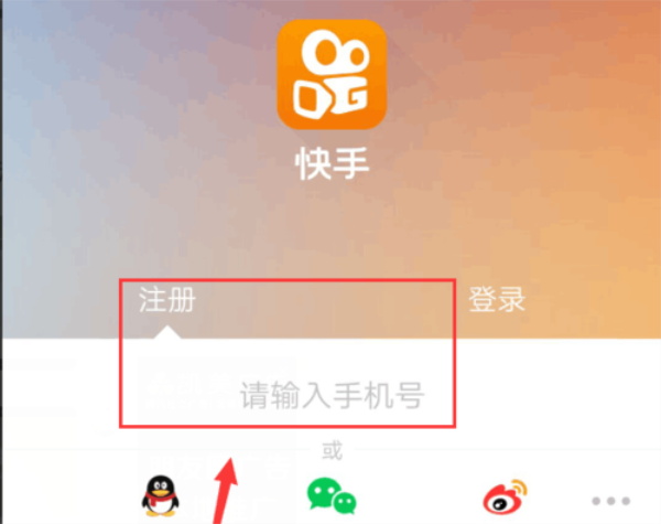 2、来到了快手界面,我们输入手机号进行注册