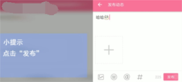 可以写下自己想说的话,在下方可以添加图片、表情、想艾特的人等操作,完成后点击“发布”即可。