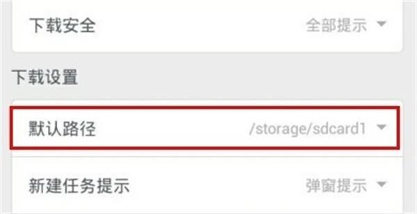 选择系统设置--高级设置,在其中找到“下载设置”,我们可以看到软件对下载文件设置了默认路径。