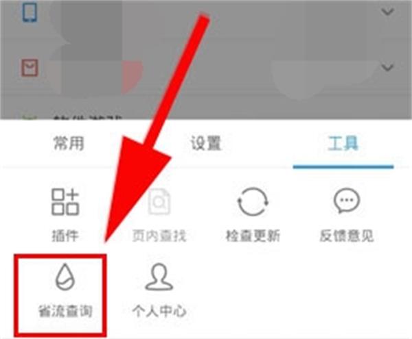 2)然后点击屏幕右边【工具】,点击以后选择左下方【省流查询】。