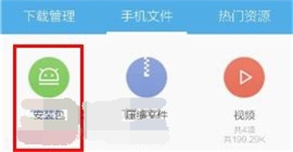 2、跳转后点击上方中间的【手机文件】,再点击左上方的【安装包】。