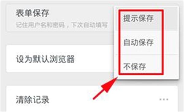 3、表单保存总有三种方案供选择,一是提示保存,二是自动保存,三是不保存。你可根据你实际的需要进行设置。退出到网址时即有设置保存成功的字样出现。