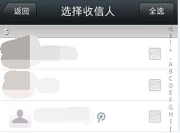6.选择新建群发后,会出现一个选择收信人的页面。选择好要群发信息的收信人。