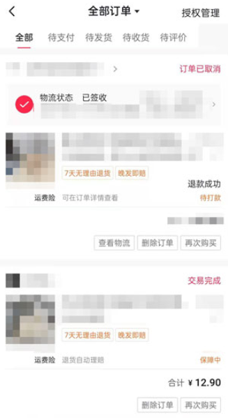 5、进入后可以看到您在抖音、抖音极速版下单购买的所有商品。