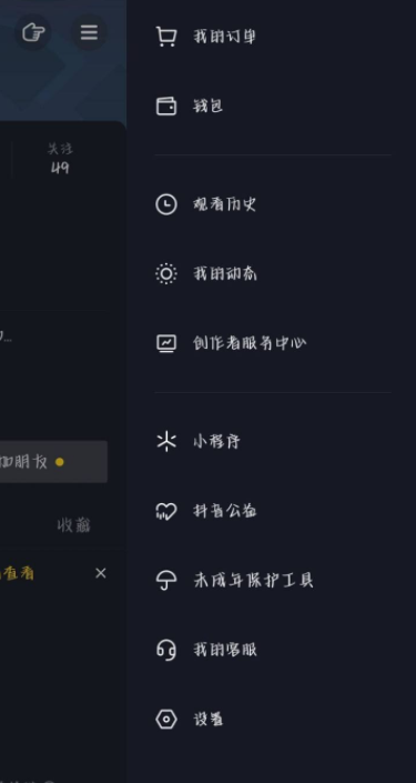 打开手机中的抖音短视频app,在登录自己的账号后,进入【我的】页面,点击右上角【菜单】。