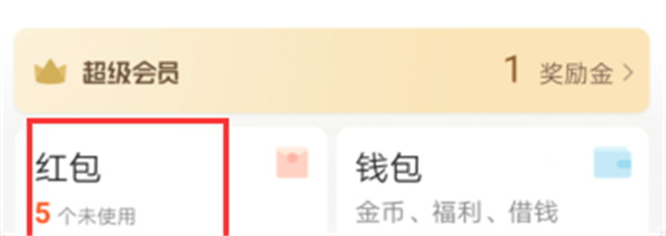 2、登录后,点击“红包”选项。