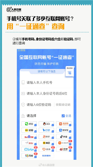 使用支付宝查询。在支付宝搜索框中输入“一证通查”小程序,点击“互联网账号查询”功能,输入手机号、身份证号后六位和短信验证码即可查询。