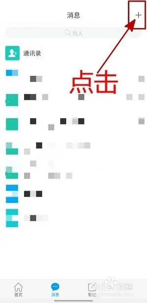 1、在学习通消息界面点击右上角“加号”