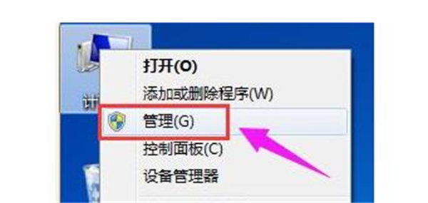 1、首先右击桌面“我的电脑”,选择“管理”。