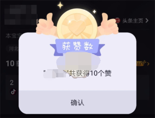 接着我们尝试点击这个位置,会打开新的对话框,仅显示“获赞数”,点击“确认”退出此对话框